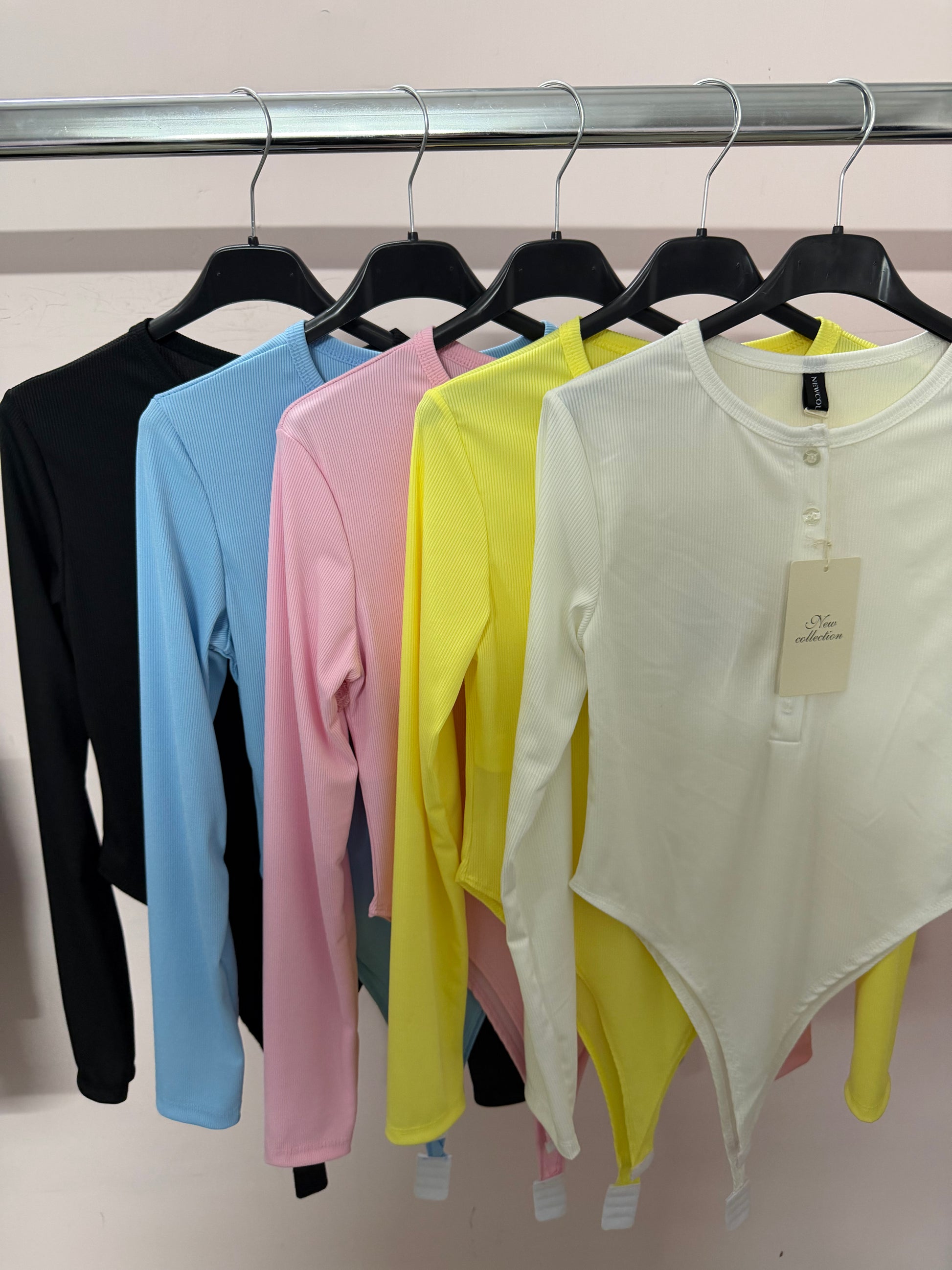 Body a costine dal tessuto elasticizzato che avvolge e valorizza le forme senza segnare. Il dettaglio dei bottoncini frontali dona un tocco delicato e raffinato, perfetto per rendere il capo semplice ma curato.