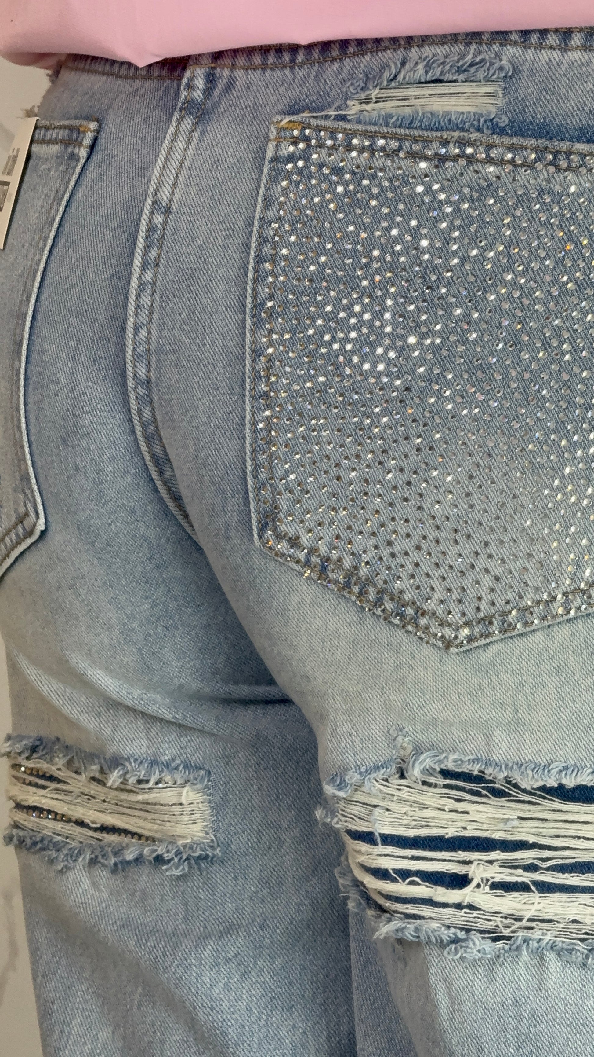 Sul retro, la tasca è impreziosita da applicazioni luminose che creano un effetto super glamour e originale.